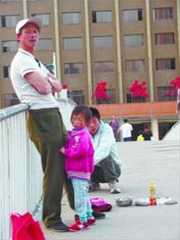 昨晚6时40分许,记者在在文化路过街天桥上见到了周晓云和她父亲周雨。小女孩身高一米左右,穿着一件粉红色的小外套,裤子很薄。她的胳膊和腿都特别纤细,仅有成年人两指粗。女孩的体型确实和4岁的孩子差不多。