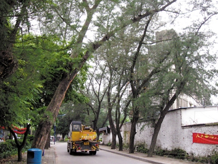 街坊宁先生在兴科路某公司工作,为了消除几棵歪脖树的隐患,他没少奔波。宁先生说,去年夏天,曾有一棵树倒了,当时绿化公司的人到场处理,他就上前建议把路旁几棵倾斜严重的树一起锯掉,“对方却说,‘这树没死、没倒,我们也没法处理。’后来绿化公司的工作人员又来处理过一棵死树,我又提了一次,可对方的说法还是一样,难道非要等树倒了才处理?这路面上人、车来往,还有那么多电线,树倒时很可能酿成惨祸。”为此,张先生还写了一份书面材料交给居委会,让居委会向相关部门反映情况,但是一直没有下文。