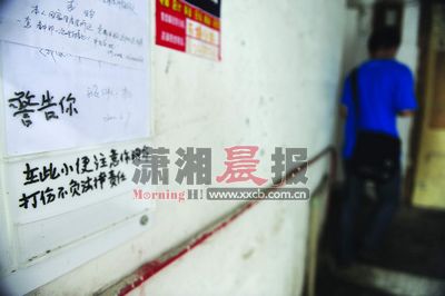 近日,家住长沙市雨花区活力社区的凌爹爹反映,小区夜宵摊多,楼道有人随意小便,于是出现了一些雷人标语,像“在此小便注意你狗命,打伤不负责任”、“在此小便就死他全家”。