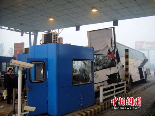 据现场交警介绍,当时司机驾驶车速过快,客车在快到达收费站时突然刹车失灵,冲撞上收费卡口,酿成事故。(完)