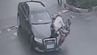 监拍:摩托逆向行驶猛撞 男子下体遭创伤