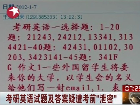 考研英语试题及答案疑遭考前“泄密”