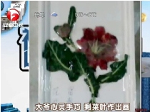 老大爷心灵手巧变废为宝 用剩菜叶作画