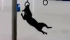 小狗玩体操 叼着吊环转