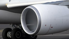 女子护栏外观看飞机起飞被气流吹跑