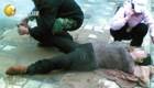 男子发现鸭子被冻湖面 跳湖破冰救援