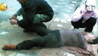 男子发现鸭子被冻湖面 跳湖破冰救援