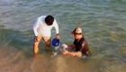 男子发现鸭子被冻湖面 跳湖破冰救援