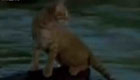 用尾巴钓鱼的小猫
