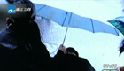 男子发现鸭子被冻湖面 跳湖破冰救援