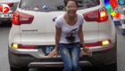 手拿钞票身挡车牌 半蹲姿势雷倒交警