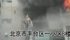 实拍高层大火 两人裹床单藏窗外