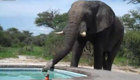 大象泳池畔喝水 吓傻池中男子