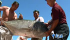 青岛市民钓到罕见怪鱼 形似鳄鱼