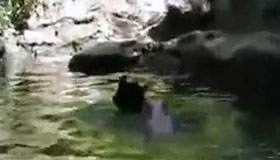男子发现鸭子被冻湖面 跳湖破冰救援
