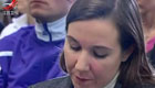 美女主持人直播球赛 被足球砸中脑袋