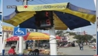 小贩红绿灯杆当伞架 路人不敢走路