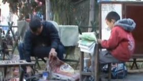 拍客:寒风中7岁男孩修鞋摊边写作业