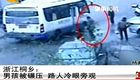 男子发现鸭子被冻湖面 跳湖破冰救援