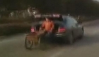 近日,在山西朔州市,一位农民坐在轿车的后备箱上,还拉一辆小斗车,小斗车随着小轿车一路狂飙。这一幕吓坏了过往的路人。