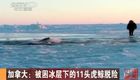 实拍:加拿大11头虎鲸被困冰层脱险
