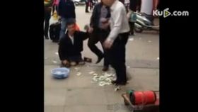 实拍:醉酒男怒打残疾乞丐 钱撒了一地
