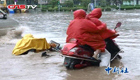 南京遭暴雨突袭 市民骑行水没车轮