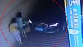监拍:奥迪加速冲出停车场 撞死1岁婴儿