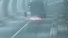 监拍:货车隧道内行驶 后轮突然火花四射飞出
