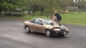 男子发现鸭子被冻湖面 跳湖破冰救援