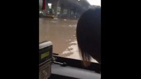 菲特来袭 杭州洪水灌公交