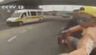 实拍巴西劫匪抢劫摩托被警察开枪击倒