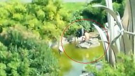 男子发现鸭子被冻湖面 跳湖破冰救援