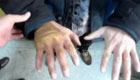 山东男子练铁拳硬功 手厚如熊掌“削砖如泥”