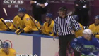 苦差事!实拍冰球裁判被壮汉挤上围栏