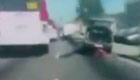 监拍一家三口过马路遭“飞来横祸”