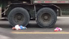大妈骑电动车被警车撞出百米 警察脱衣逃跑