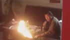 实拍:男子为讨钱点燃煤气瓶 民警破窗而入解救