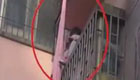 少女与母亲吵架被锁屋内 床单结绳出逃被困半空