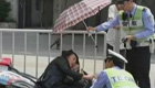 实拍女子逆行撒泼抗执法 累晕路边交警忙打伞