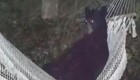 美国黑熊闯后院 吃饱喝足吊床上打盹