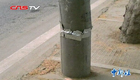 郑州街头断裂电线杆包锡箔纸“遮羞”