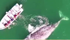 实拍:游客乘船邂逅灰鲸群 庞然大物主动示好