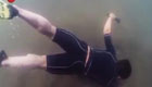 男子发现鸭子被冻湖面 跳湖破冰救援