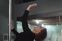 男子秀绝技 倒立拉车行走