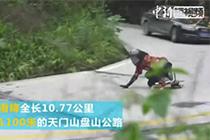 长板速降运动员挑战张家界天门山“天路99弯”