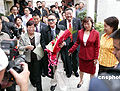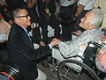 图:李敖与上海“小校友”亲切握手