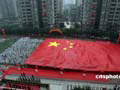 图:重庆小学生传递巨型国旗迎奥运