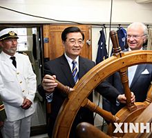胡锦涛与瑞典国王出席"哥德堡"号仿古船返航仪式