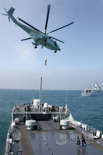 12月10日,南海舰队航空兵某直升机团与舰艇、特种部队在海上进行联合反恐演练,通过海上巡逻、海上救护、垂直输送兵力、货轮灭火、解救人质等不同环节的演练,有效提高了反恐应急处置能力……[全文]